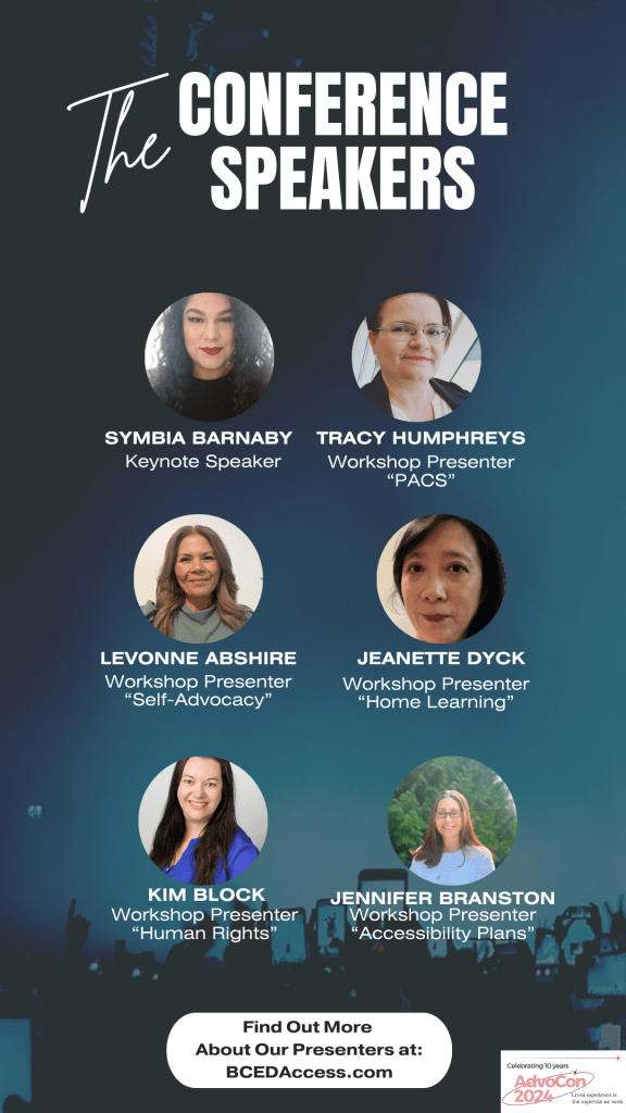 Tickets are now on sale. $45.00. For those who need financial assistance to attend, please email us. We don’t want the fee to be a barrier for people to attend. secretary@bcedaccess.com